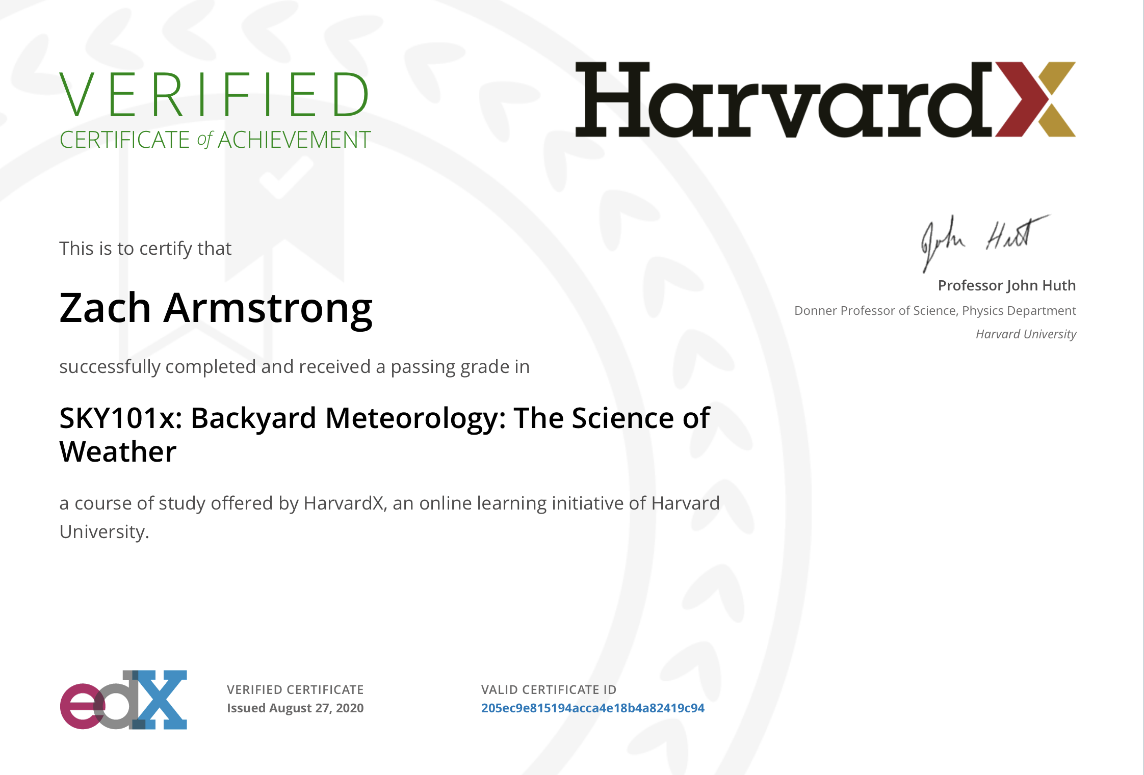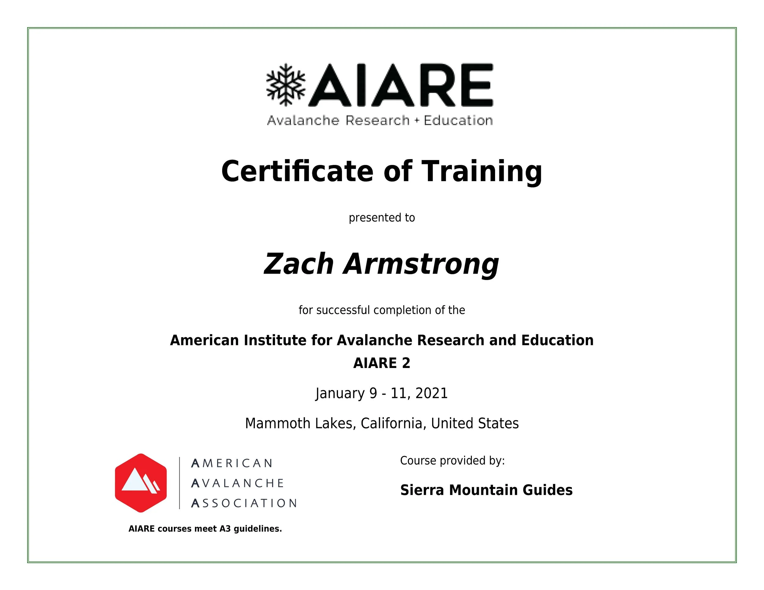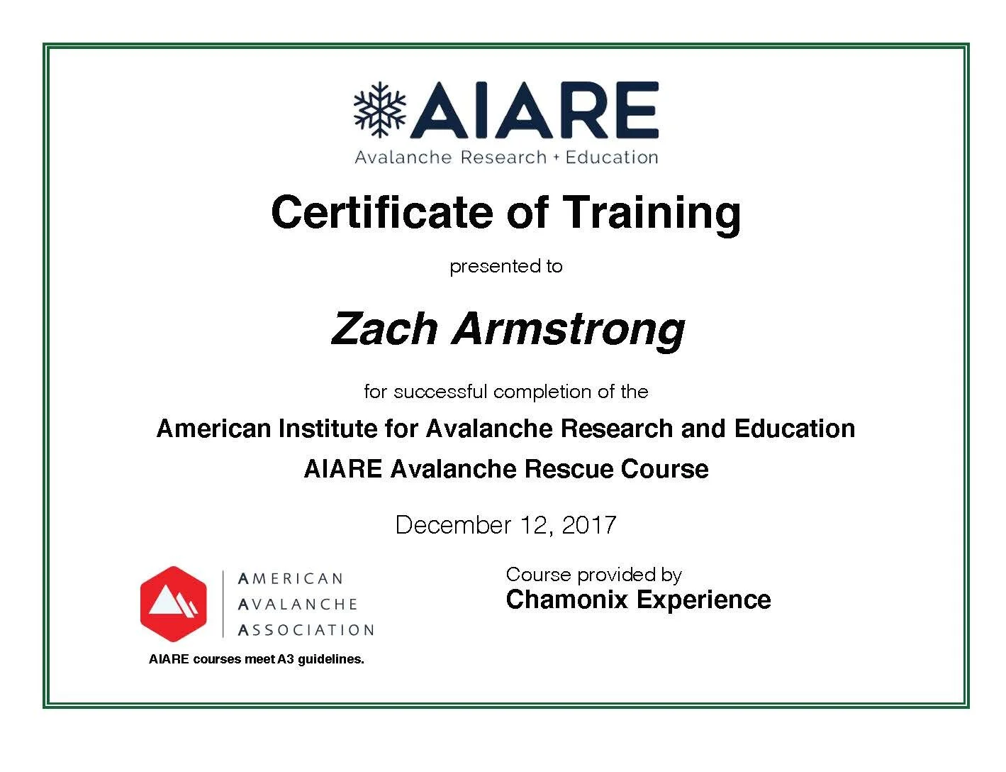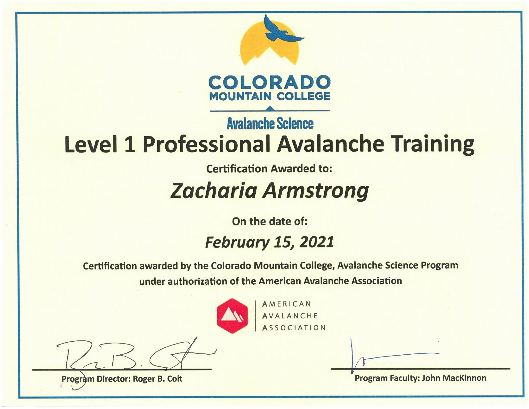 Certifications Below you will find my current certifications relevant to my work in the snow, weather, and avalanche industry. View fullsize View fullsize